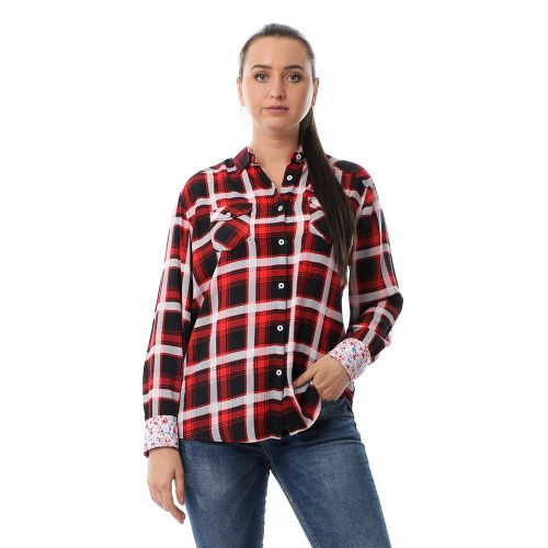 Punto D’Oro قميص حريمي كاروهات كاجوال – احمر × كحلي