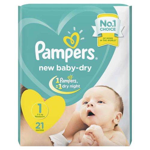 Pampers حفاضات بيبي دراي نيو – مقاس 1 – 2-5 كجم – 21 قطعة