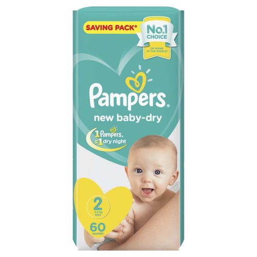 Pampers حفاضات بيبي دراي نيو – مقاس 2 – 3-8 كجم – 60 قطعة