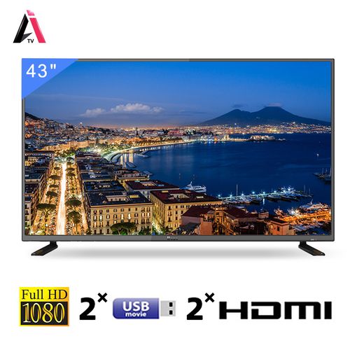 6 Reasons to Choose AIPrice -Cost-effective Features- USB x 2, HDMI x 2Diplay-Full HD quality Screen -BOE's IPS panelQuality – Made in Egypt Service – Perfect after-sales serviceCost-effectiveEnjoy the highest quality products with the least moneyThe same quality, lower price, better sound, more features.Full HD (1080P) ResolutionThe color of charm lets the TV shine,Cinema-level quantum dot technology, rich color contrast.The colors are beautiful, the pictures are real and vivid, and every picture is immersive.BOE high-quality display makes the world you see clearer.Quality Lift, details capture, scene closer to reality, dark details no loss, highlights no exposure.The dark part is darker. The bright part is brighter.More details, more vivid colors, restore the real world.Immersive AudioThe treble is bright, the bass is deep, Standard, music, movie, sports, User and other modes can be switched freely.Closed cavity design, strong sound penetration.Adopt the acoustic structure of the sound cavity and use the closed diaphragm design to make the sound in the compact box of the TV set release the sound with penetrating power.USB MovieThe USB Movie feature supports many video playback formats, allowing you to enjoy enhanced playback compatibility on most of the popular video formats commonly available in the market.Side-in interfaceTV plugging is more convenient.It is more convenient to plug and unplug the USB flash drive, connect the computer, and play the game console.HDMI×2 USB×2High Definition Multimedia InterfaceThis TV is equipped with an HDMI terminal to facilitate uncompressed, all-digital video and audio connections, which supports high definition video signals and multi-channel audio signals. With HDMI, you can enjoy an ideal full-digital AV reproduction that delivers noise-free and highly precise image quality.Effectively reduce image noise.Complementing the picture detail of restoring distortion.High performance processor, smoother.Process faster and calmly meet your entertainment needs.Serve customers with Sincerity,Quality promised.Under normal use, the quality issue of non-human damage!After-sales service address: 35abdelziz street-ataba-Cairo mustafa.After-sales service phone:+20 1119338888Technical Specifications:MainScreen Size: 43 InchResolution: 1920 x 1080p (Full HD)Aspect Ratio: 16:9FeaturesUSB Input: Video – Photos – MusicInputs and OutputsAV IN: 1HDMI: 2VGA: 1USB: 2Component In: 1S/PDIF: 1Audio Out: 1
