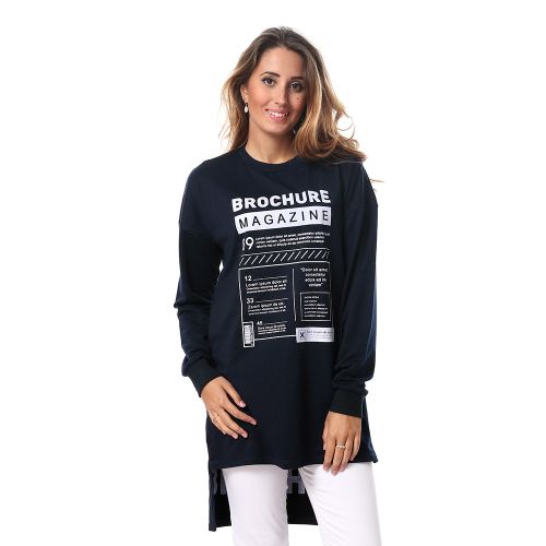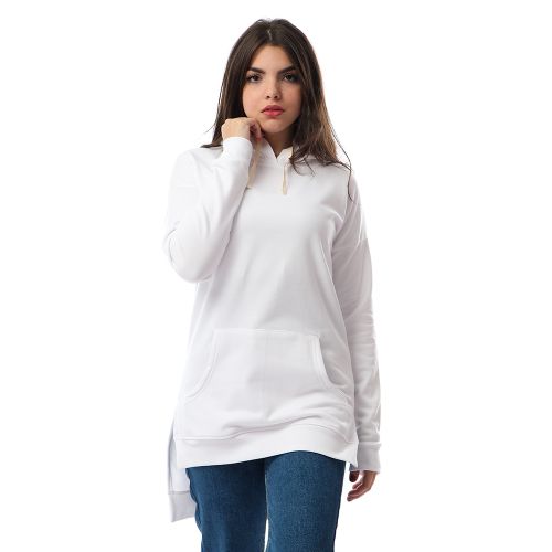 Andora سويت شيرت ساده اطول من الخلف – ابيض