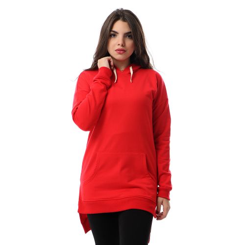 Andora سويت شيرت ساده اطول من الخلف – احمر