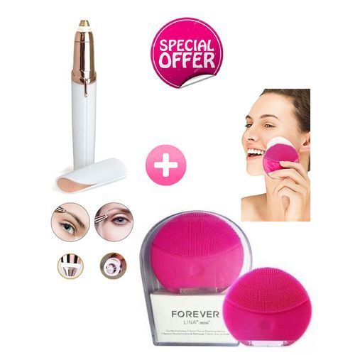 Flawless Eye Brow Hair Remover With Charger + Silicone Ultrasonic Facial Cleanser Brush