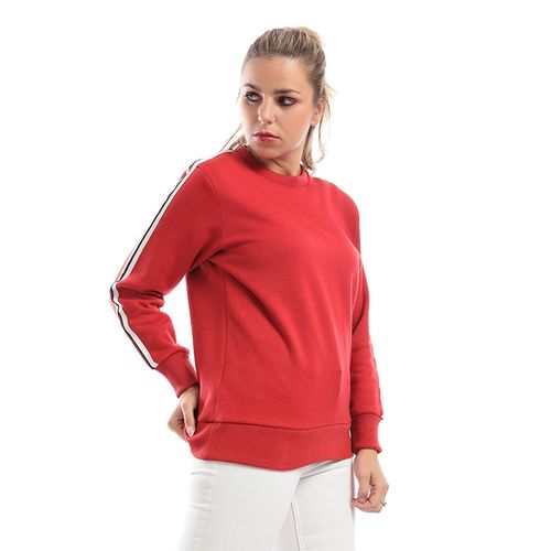 Giro Active Slip On Sweatshirt With Tr-Tone Striped On Sleeves – Red
