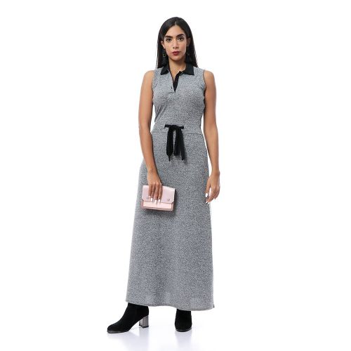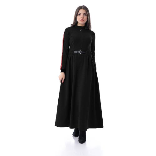 Giro فستان طويل بكم مخطط من الاكمام – اسود