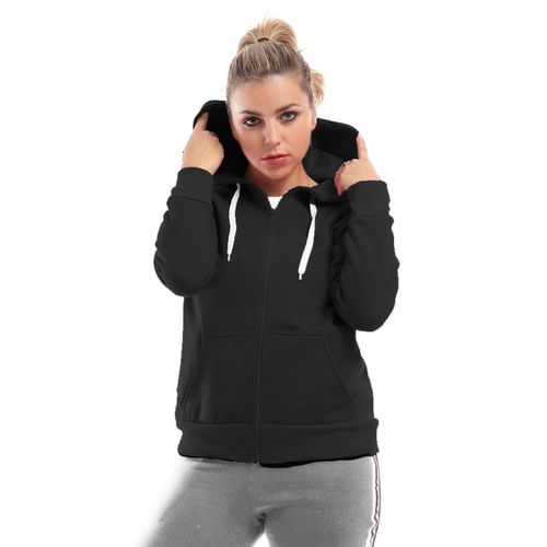 Giro Women Solid Hoodied Long Sleeves Zipper CLosure Sweatshirt – Black
