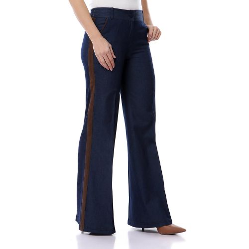 Giro بنطلون برجل واسعة جينز ليكرا بشريط شامواه علي الرجل