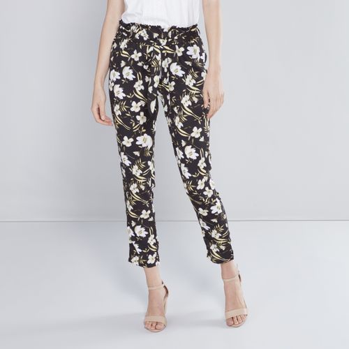 Max Floral Printed Paperbag Pant With Pocket Detail – Multishade Black