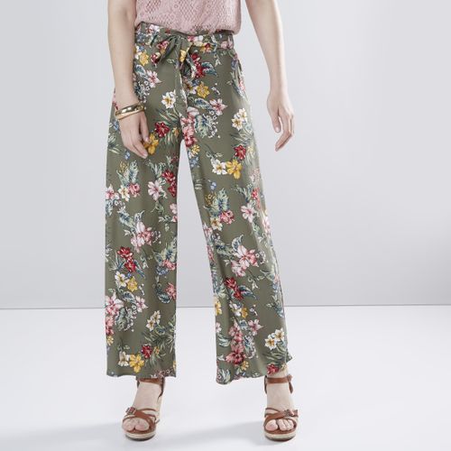 Max Floral Printed Palazzo Pants With Tie Ups – Multishade Green