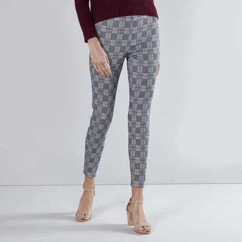 Max Slim Fit Chequered Pants with Elasticised Waistband MULTISHADE WHITE