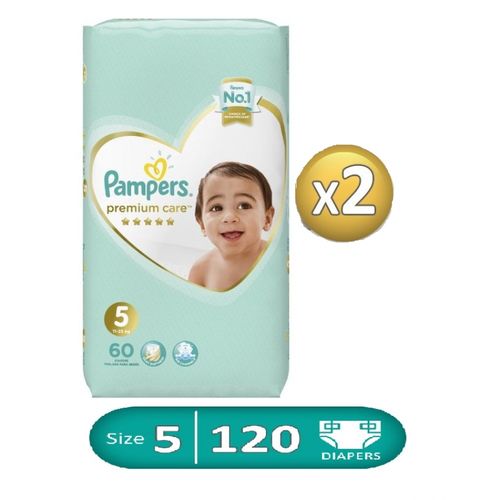 Pampers حفاضات عناية مميزة – مقاس 5 – 2 عبوة – 120 قطعة