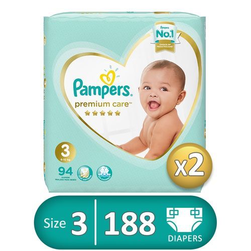 Pampers حفاضات عناية مميزة – مقاس 3 – 2 عبوة – 188 قطعة