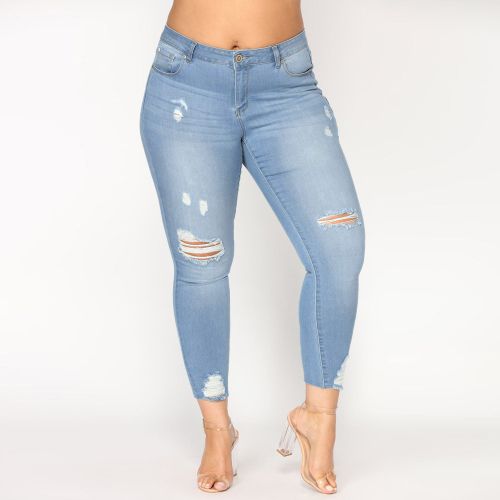 Fashion Xiuxingzi Women Plus Size Ripped Stretch Slim Denim Skinny Jeans Pants High Waist Trousers