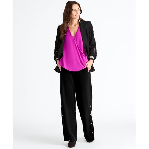 Take track pants to the work week! A relaxed fit with snap legs, we dress these up with a cami and blazer for the office. They are still equally loved on the weekend with trainers, tee, and leather jacket (or a long, cozy cardi!)Fitted at waist. Relaxed through thigh and leg.Functional snaps down sideHemline below anklePOLY/ELASTANEImportedDry cleanModel is 5\'10.5\" and is wearing size 4Item # RMHB017761CY