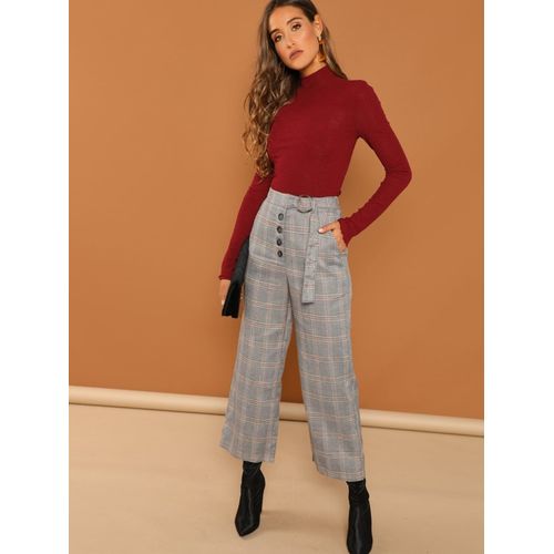 SHEIN Slant Pocket Plaid Palazzo Pants