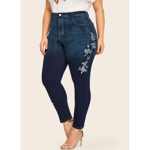 SHEIN بنطلون جينز مقاس كبير نحيل مطرز بزهر