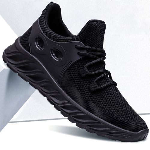 Fashion Mens Casual Running Sport Shoes Man Breathable Flats Shoes-Black