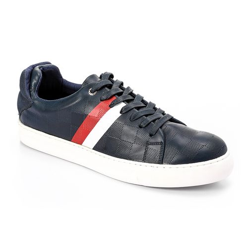 W&D Tri-Tone Leather Men Sneakers – Navy Blue & White & Red