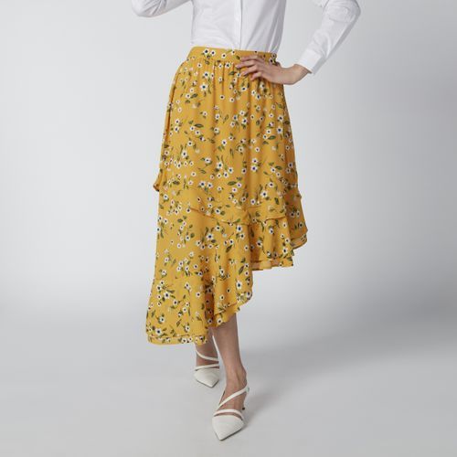Splash تنورة متوسطة الطول بحوّاف غير مستوية وطبعات أزهار