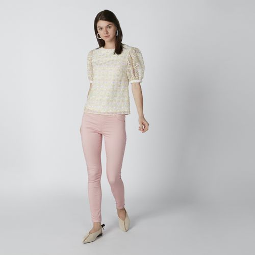 Splash بنطال جينز طويل بقصّة سكيني وخصر مرتفع وطبعات من خامات مستدامة