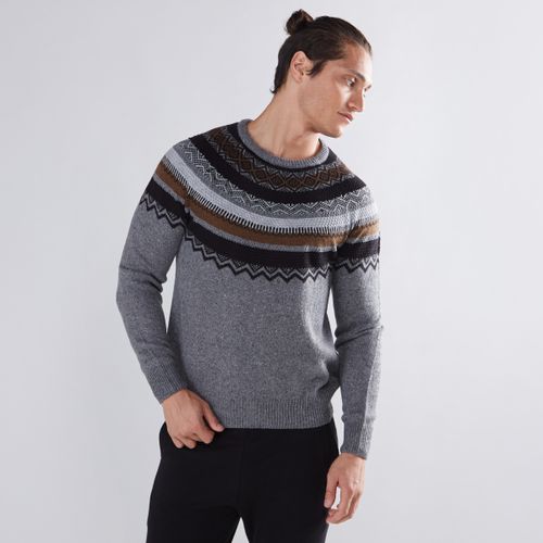 Max Textured Intarsia Sweater with Long Sleeves MULTISHADE GREY