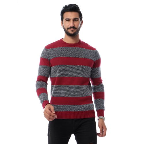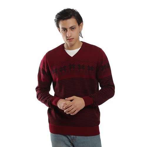 TOP KAPI Multi-pattered Winter Pullover – Burgundy