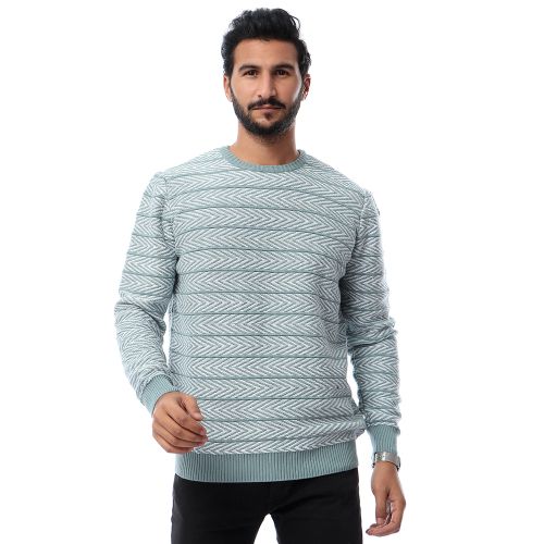 TOP KAPI Zigzag Winter Knitted Pullover – Light Sea Green