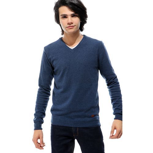Ravin Solid Basic V-Neck Long Sleeves Pullover – Heather Navy Blue
