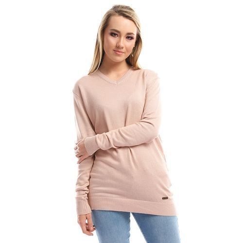 For simple everyday styling the V-Neck jumper is ideal, crafted from pure Cotton in a relaxed, cropped fit. Featuring a contemporary batwing sleeve and finished with a textured stitch. ,Pink v neck slim sweater that can be paired with skinny boots and a white shirt for a classical winter outfit r with jeans sneakers and winter jacket for an everyday casual outfit