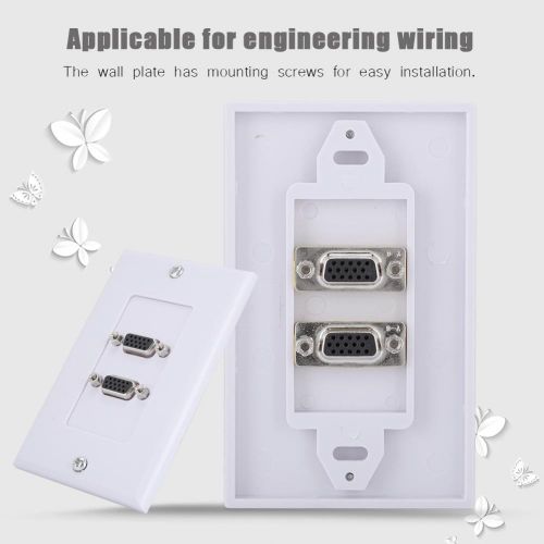 Features:1. The panel is made of ABS flame retardant material, which is sturdy and durable.2. The VGA panel is plugged in for easy connection.3. No soldering required and flexible wiring.4. Applicable for engineering wiring.5. The wall plate has mounting screws for easy installation.Specifications:Model: US VGA Socket Wall Mount PanelMaterial: ABSSize: Approx. 11.5*7cm/4.53*2.75inInterface: VGAPackage List:2 * Panel4 * Screws2 * VGA Head