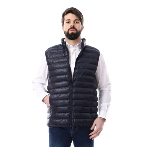 Dalydress Solid Sleeveless Puffer Vest – Navy Blue