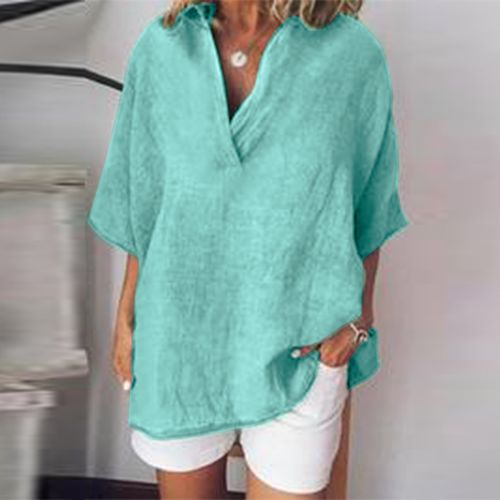 Zanzea Women Short Sleeve V Neck Tops Cotton Shirts Blouse